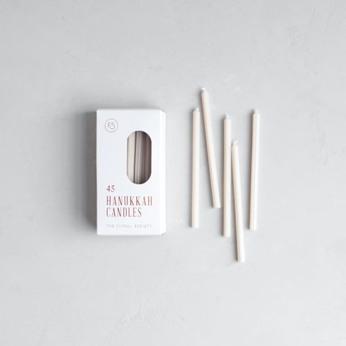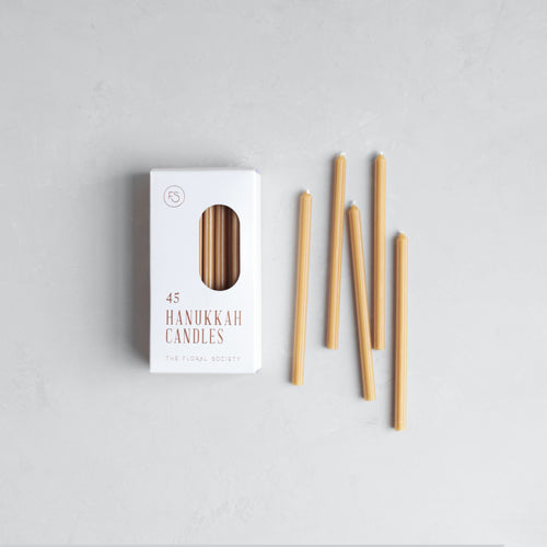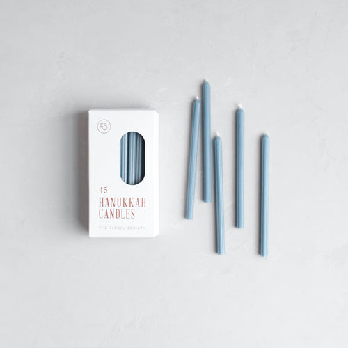 Hanukkah Candles-Illuminate and celebrate the Festival of Lights with a textured, taller-than-average take on traditional Hanukkah candles. Each candle features a cotton wick, elegant ribbed form, and superior depth of color. Perfectly sized to fit our Beacon Menorah and your family heirlooms. 48 candles per box. Dimensions: 6" H x 0.35" D