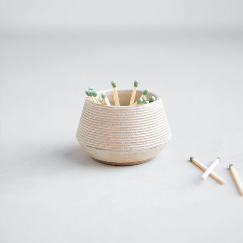 A Grandmont Street signature. Ribbed match strike crafted to pair with our candles and incense. Must use strike anywhere matches with this holder. Matches are not included. Dimensions: 2.5”x2.75”x2.75”