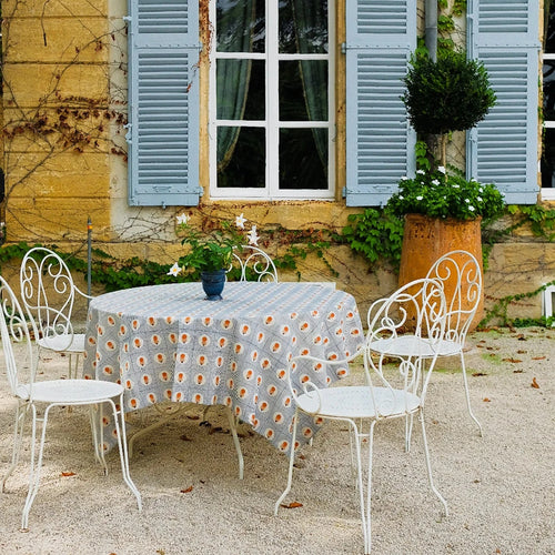 The Namita tablecloth features Soil to Studio’s most recent Bagh collection, inspired by the Royal Gardens of Rajasthan, the collection celebrates local flowers like Bougainvillea and Marigolds. Delicately block-printed on handwoven textiles by a small cooperative run by master block-printers, all table linens are entirely made by hand; subtle nuances are part of the charm. Designed in Brooklyn, Made in India
