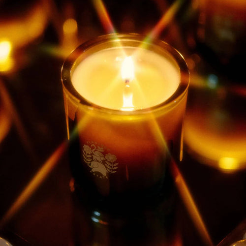 After each burn, see that the wick is centered in the wax. This will also ensure that the glass does not overheat. The wick and flame should never be touching the glass. When approaching the end of the candle, leave ¼ inch of wax unburned and ensure you are not burning the candle for more than 3 hours. The glass can get overheated without the presence of wax and break.